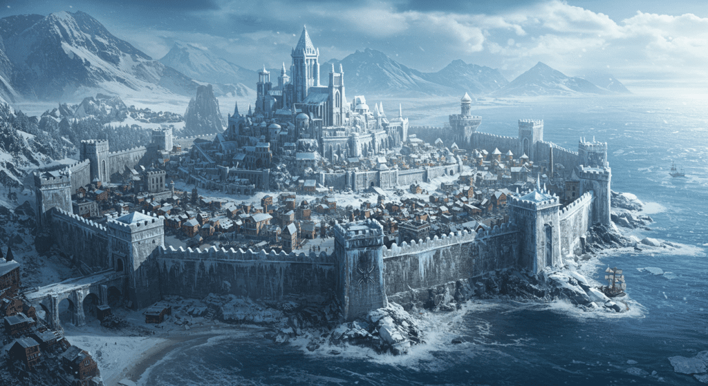 Notable Districts: The Arcane Quarter, Silvergate, The Outer Ring, Frostspire Harbor
